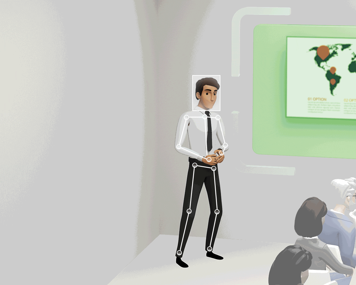 Dynamic, cinematic camera framing for the presenter based on advanced computer vision.