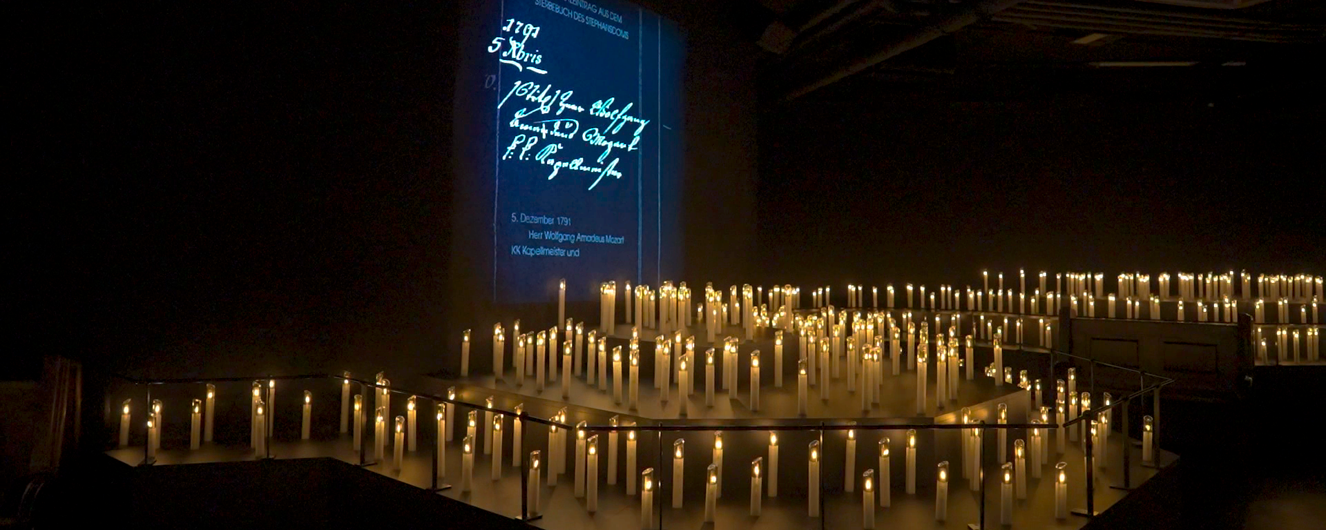 The Mozart Experience in Vienna extends over 1500 square meters and offers a comprehensive presentation of Mozart's life and work in five artistically interpreted rooms. These rooms use a state-of-the-art Q-SYS AV system, comprising over 250 loudspeakers and 40 projectors. This solution enables an immersive and innovative presentation in which no two loudspeakers receive the same signal within an hour, creating a unique acoustic experience. The aim is to appeal to and inspire both classical music lovers and the younger generation.